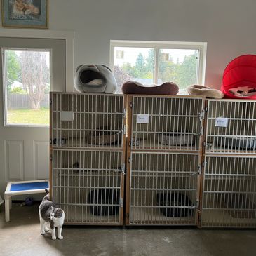 Our 1,450 square foot facility allows us to temporarily care for homeless animals until they are reunited with their owners or find a new home. We have spacious kennels and outdoor play areas (see below) including a new cattery (above), plus a team of dedicated caretakers to ensure the wellbeing of every animal in our care.